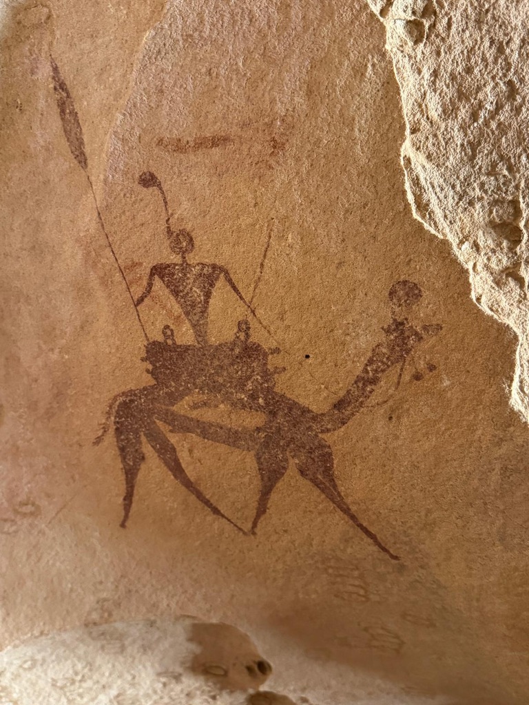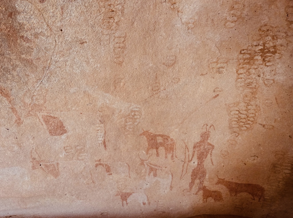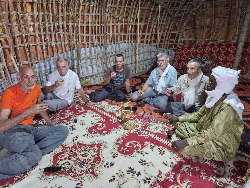 De Kirdimi nous sommes accueillis par les autorités locales à la mairie. D’une manière générale, nous avons toujours été très bien accueillis par les autorités locales ou régionales, ainsi que par tous les habitants de ce pays. Puis nous nous  dirigeons vers le troisième site rupestre  d ‘Archanna qui dévoile de beaux parcours potentiels plus près de la capitale du Borkou. Après une visite approfondie du site, avec les peintures plus anciennes, nous retournons sur Faya.