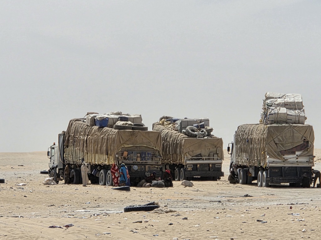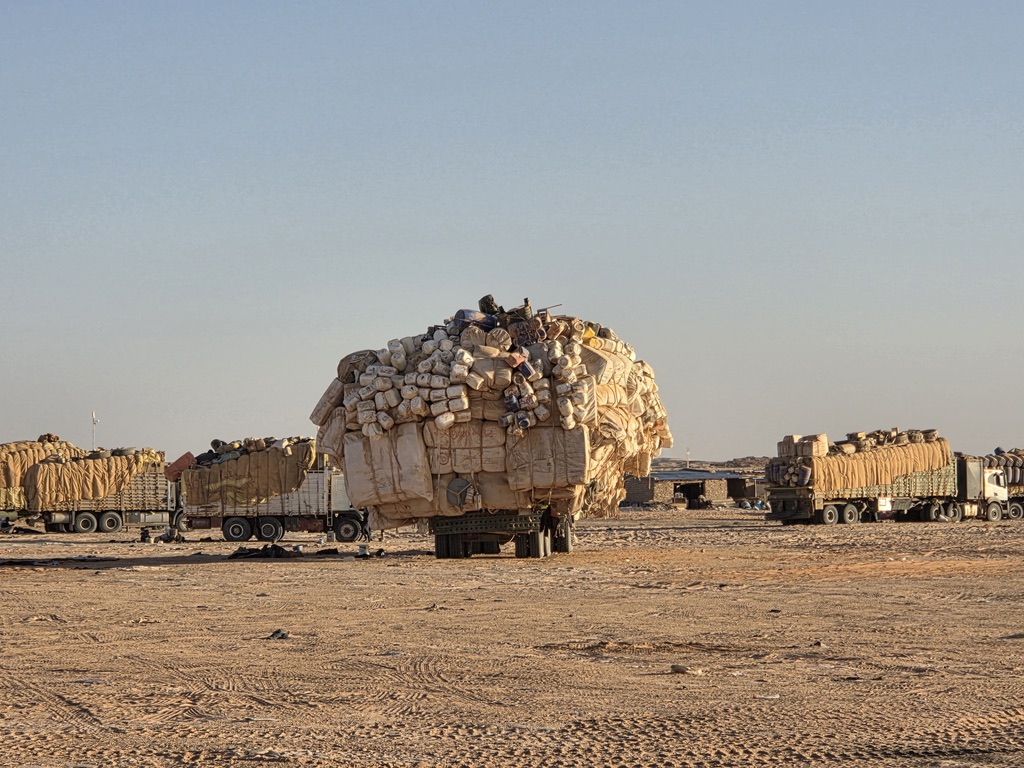 Le retour est un peu long de nouveau mais la bonne humeur générale, les échanges multiples avec les chameliers, les chauffeurs, la grande diversité des paysages font passer le temps. A noter l’absence de grain de sable dans le déroulement de notre voyage si ce n’est celui qui s’agrège à tous les autres pour donner naissance aux dunes du désert.